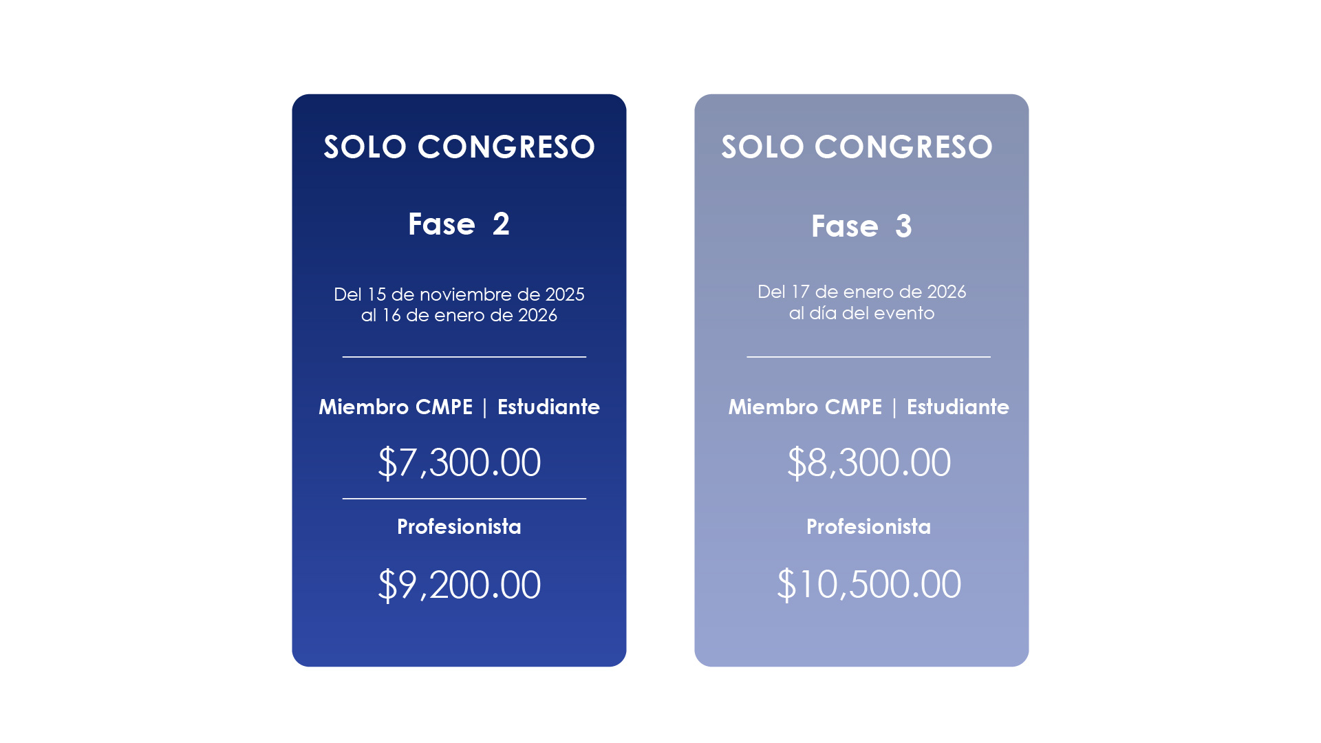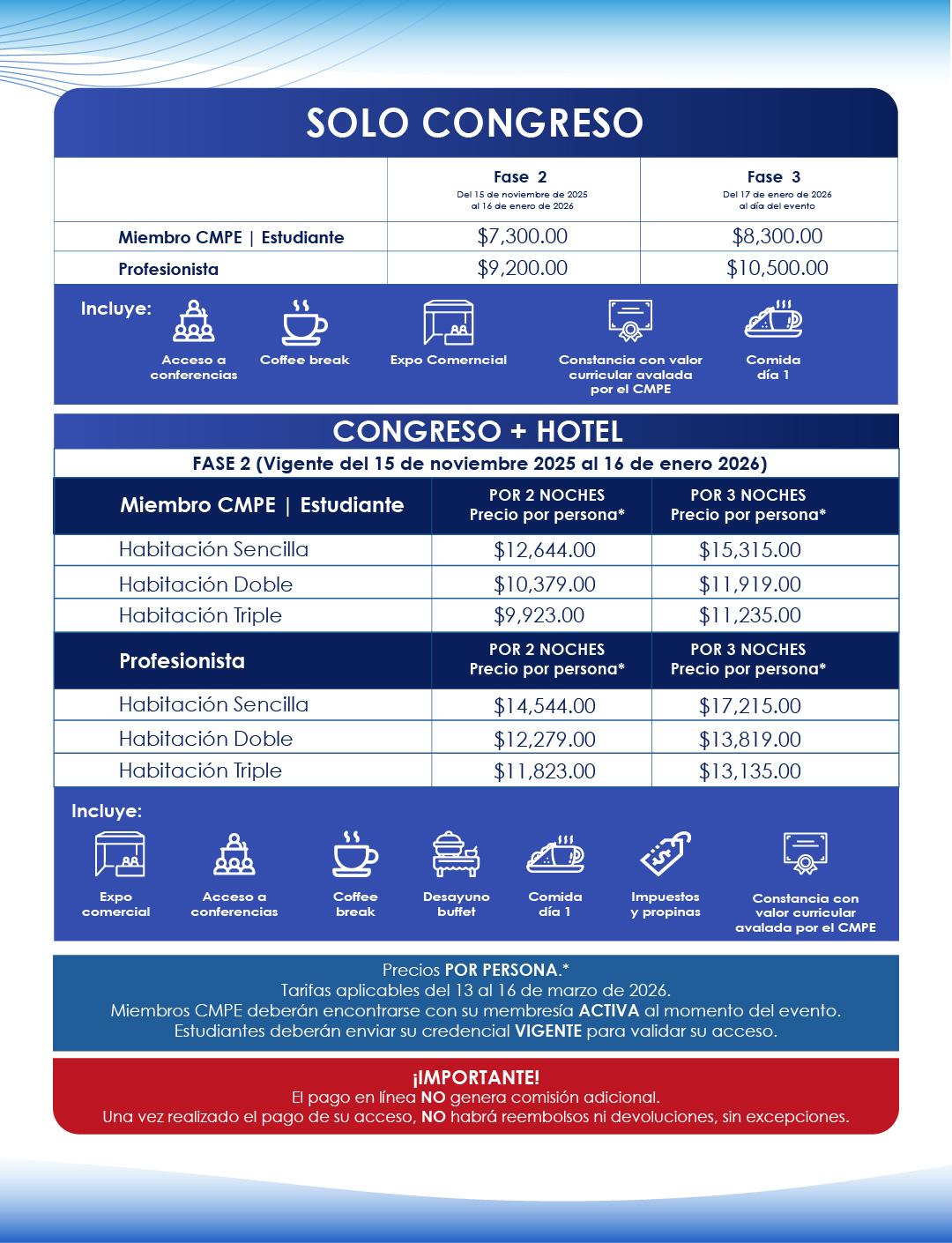 | Miembro CMPE | PROMOCIÓN NAVIDEÑA | SOLO CONGRESO (Vigente al 15 diciembre) | $ 6,300 MXN |