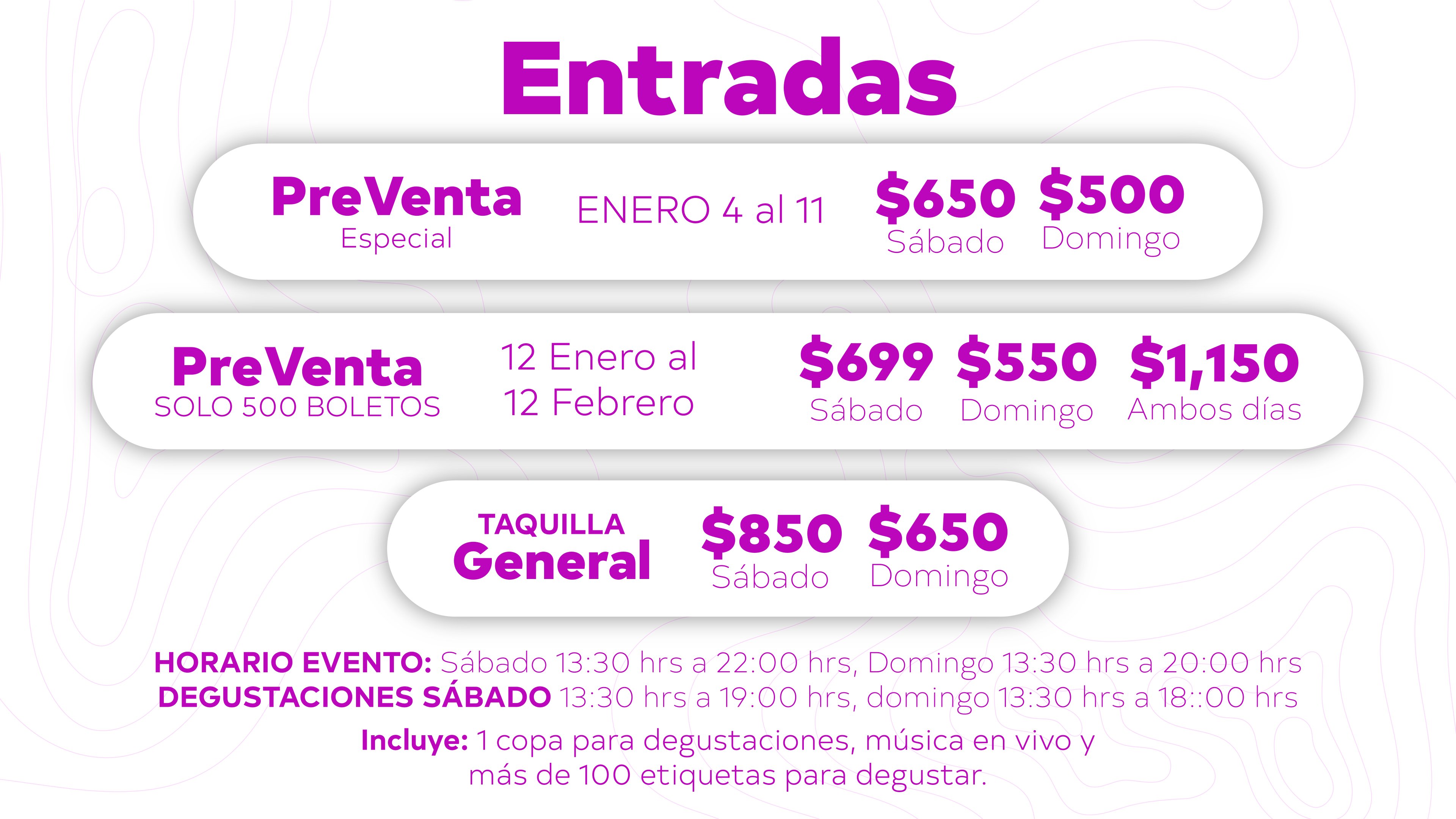 | 2 PASES UN DÍA: PREVENTA ESPECIAL | Domingo (Vigente hasta el 11 de enero) | $ 1,000 MXN |