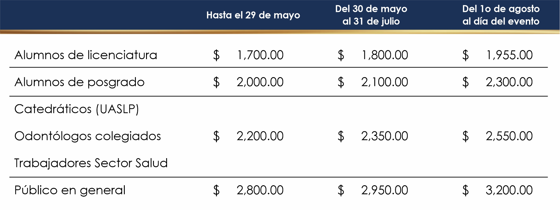 Los programas de posgrado en Cirugía Oral y Maxilofacial, Estomatología Pediátrica, Endodoncia, Ortodoncia y Ortopedia, Odontología Estética, Periodoncia, así como el Doctorado en Ciencias Odontológicas, te invitan a formar parte de este importante encuentro académico, orientado a fortalecer la formación profesional y promover la colaboración interdisciplinaria.